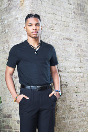 KD-0104 Black Onyx Agate 20 Inch Necklace w/ Wire Wrapped Pendant
